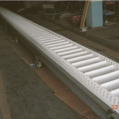 1、皮帶輸送機機頭、機尾處底板松軟時采用長2m、寬1.5m、深1m的水泥基礎固定,底腳螺栓(Φ20mm)埋入水泥基礎不少于700mm。機頭、機尾處底板堅硬時,采用地錨固定(錨固力不小于50KN),地錨螺栓(Φ20mm)用水泥澆鑄埋入底板不少于1400mm。 2、安裝皮帶輸送機必須做到機頭、機尾固定牢固,運行平穩(wěn)。底皮帶距底板不小于400mm,機尾滾筒最低點距底板不得小于150